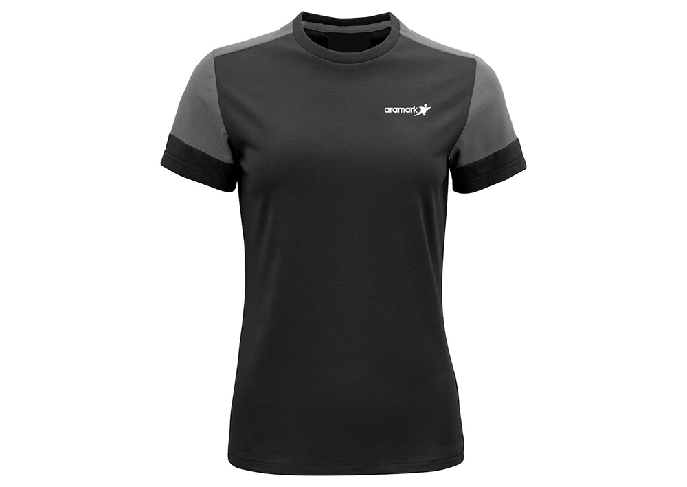 Two-tone T-shirt with a modern cut. Spandex in the neck rib.